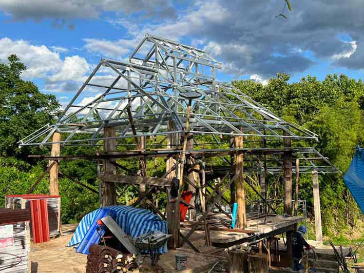 🙏🙏 ซึ่งหลังจัดงานบุญทอดผ้าป่าสามัคคีเสร็จ ก็ลุยงานเต็มที่ เพื่อสรรสร้างงานในพระพุทธศาสนา บัดนี้คณะช่างกำลังเร่งทำโครงหลังคา กุฏิเรือนศรัทธา วัดเวฬุวันนาคา จ.แพร่ เตรียมการจะมุงหลังคาภายใน เดือนกรกฎาคมนี้