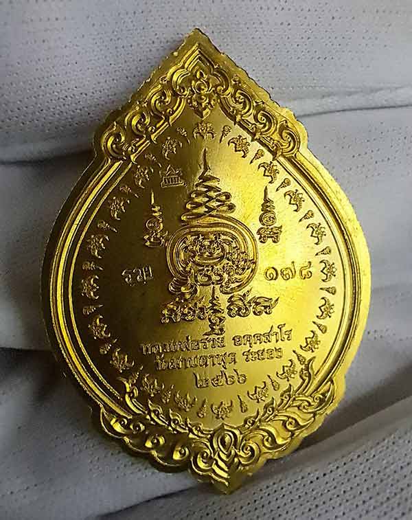 เนื้อทองทิพย์ ลงยาองค์ครุฑแดง + ปีกแดง ตอกโค๊ตและหมายเลขกำกับทุกเหรียญ พญาครุฑ รุ่นดวงเศรษฐี หลวงพ่อรวย วัดมาบตาพุด จ. ระยอง