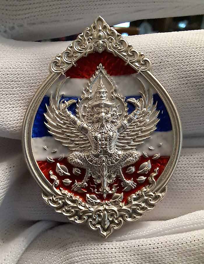 เงิน คุ้ยลงยาสีธงชาติ พญาครุฑ รุ่นดวงเศรษฐี หลวงพ่อรวย อคฺคสาโร วัดมาบตาพุด