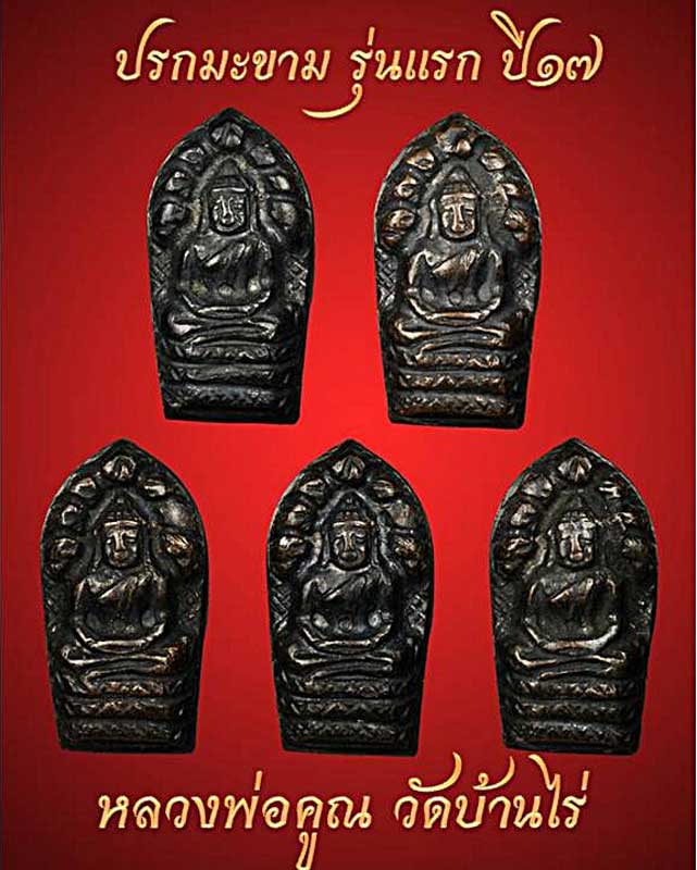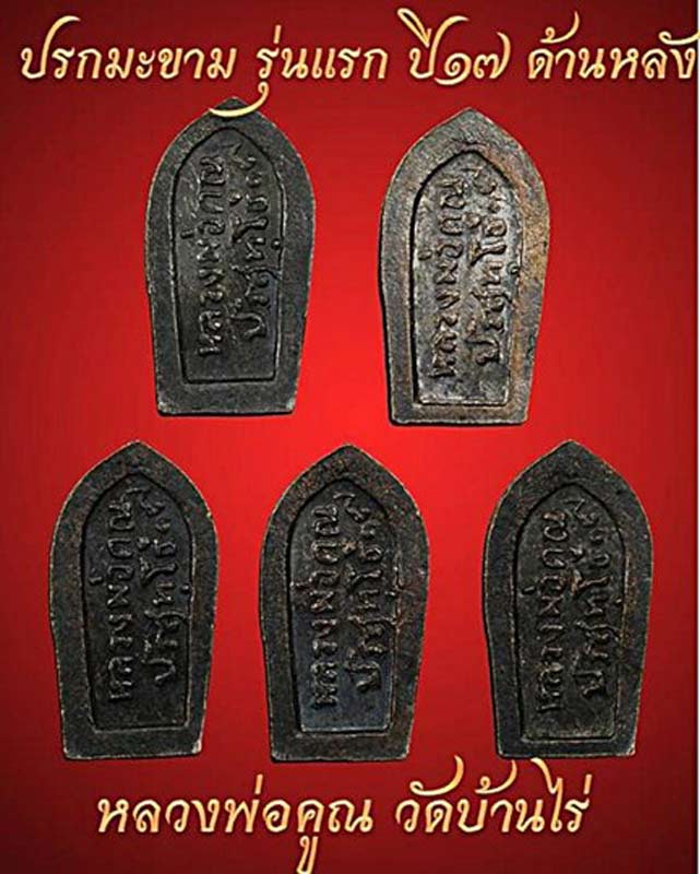ผ่าปรก รุ่นแรก หลวงพ่อคูณ วัดบ้านไร่ จ.นครราชสีมา ปี 17โดย""คุณหมอพานทิพย์"" พระดีที่มีอนาคตไกล ราคาขยับขึ้นทุกวัน ต้องขอออกตัวก่อนนะครับว่าไม่ได้เก่งมาจากไหน แต่จุดและตำหนิต่างๆที่ได้มาก็มาจากการเช่าของจริงมา แล้วมาเปรียบเทียบหาจุด ตำหนิ ที่เหมือนกันทุกองค์ พระที่ใช้เป็นตัวอย่างในครั้งนี้จำนวน 5 องค์ จุดที่ 1 มีรอยเนื้อเกินจากใบหูขวาขององค์พระ 2 บริเวณปรายด้านบนใบหูซ้ายเป็นสันตั้งขึ้นมาเป็นเส้นบางและคม มาด้านหลังกันครับ 3 บริเวณหัวด้านในตัว ณ ตรงกลางมีเนื้อเกินเป็นจุดกรมๆ 4 ตัวสระ อิ ผิวเป็นขั้นๆไม่เรียบเสมอกัน 5 ปราย ส มีเนื้อเกินสามจุด 6 มีรอยบุ๋มตรงนี้ทุกองค์ มากบ้างน้อยบ้างแต่ผมเห็นมีทุกองค์ครับ 7  8 ตรงสองจุดนี้มีเนื้อปลิ้นกลับมาด้านหลัง ตั้งเป็นสันทุกองค์ ข้อสุดท้าย..ท่าไม้ตายไอ้มดเอ็ก..555+ มาดูตัวตัดกันบ้างครับ ครูบาอาจารท่านสั่งสอนมา ว่าพระปั้มจบที่ตัวตัด 9 ขอบตัวตัดบริเวณช่วง 11 น. จะมีขีดๆ สองสามเส้น เป็นตำหนิของตัวตัด มีแบบนี้ทุกองค์ จบ 9 ข้อนี้ก็คงจะเป็นภูมิคุ้มกันให้เพื่อนๆได้ไม่มากก็น้อยครับ หวังว่าคงเป็นประโยชน์กับทุกคนนะครับ.พระปรกใบมะขามหลวงพ่อคูณ รุ่นแรก ปี 17 เป็นพระปรกที่สร้างกรณีพิเศษจริงๆครับ หลวงพ่อคูณ ปลุกเสกให้แบบครบเครื่อง เรียกว่าครอบจักรวาลเลยครับ จำนวนการสร้าง พระปรกใบมะขาม รุ่นแรก มีดังนี้ครับ เนื้อทองคำ สร้างจำนวน 37 องค์, เนื้อเงิน สร้างจำนวน 812 องค์, เนื้อนวโลหะ สร้างจำนวน 2000 องค์, เนื้อทองแดง สร้างจำนวน 10000 องค์  |