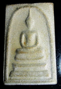 พอเอาออกจากพิมพ์ ก็นำไปกดลงบนผงเก่า จึงมีผงติดทั่วไปจามองค์พระทางด้านหน้า