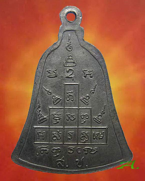 เหรียญรูประฆัง ส.ช. คำว่า ส.ช. ที่อยู่ด้านหลังเหรียญ หมายถึง ชื่อและ นามสกุลย่อของผู้จัดสร้างเหรียญรุ่นนี้