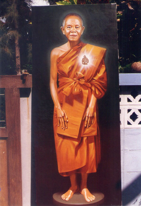 ลพ.คูณ ให้เงินมาสร้าง โรงเรียนบ้านเกาะรัง อ.ชัยบาดาล จ.ลพบุรี เดิมเป็นอาคารไม้ชั้นเดียวเก่าทรุดโทรม สร้างใหม่เป็นอาคารตึก 3 ชั้น พอสร้างเสร็จ ลพ.คูณมาทำพฺธีเปิด ผมได้ร่วมทำบุญและรับรูป ลพ.คูณนั่งยองรูปเล็กกับรูปใหญ่กับมือ ลพ.คูณ เมื่อมองดูอาคารเรียนก็มีแรงบันดาลใจที่จะวาดลพ.คูณยืนเต็มองค์ด้วยสีน้ำมัน ถวาย ลพ.คูณเพื่อนำติดตั้งที่อาคารเรียน เมื่อวาดเสร็จแล้วก็นำมาให้โรงเรียนบ้านเกาะรังกับครูสุดท้ายหลาน ลพ.คูณแท้ๆแล้วนัดวันที่จะมาเจอกันที่วัดบ้านไร่เพื่อถวายรูปวาดให้ ลพ.คูณเมื่อถึงเวลาก็เข้าไปในห้อง ลพ.คูณเวลานั้นอยู่ที่กุฏิหลังเก่า ปัจจุบันเป็นพิพิธภัณฑ์วัดบ้านไร่ เมื่อได้กราบ ลพ.คูณแล้วผมถึงได้มีโอกาสได้อธิบายให้ ลพ.คณฟังว่าทำไม่ถึงวาดรูปยืน ลพ.คูณ "ลพ.ครับมีคนชอบพูดว่า ลพ.นั่งย่องๆไม่เรียบร้อย ผมเลยตั้งใจที่จะวาด ลพ.ยืนที่ดูสุภาพเรียบร้อย สำรวมให้เขาได้เห็นกันครับ (ก่อนหน้านั้นผมก็ได้ความรู้มาว่าท่านั่งยองๆของพระสงฆ์ในศาสนาพุทธมีอยู่จริง พระสงฆ์ในพม่าเรียกว่าท่านั่งกะโยก) เมื่อได้เล่าให้ ลพ.คูณได้รับฟังแล้วก็มีความสบายใจที่ได้ทำเรื่องนี้ถวาย ลพ.คูณเพื่อให้คนมีความเข้าใจครับ........ทุกวันนี้รูปยืน ลพ.คูณก็ยังติดตั้งอยูที่อาคารเรียนชั้น 2 ด้านหน้าตรงกับเสาธงตามรูปที่ลงมาให้ดูครับ.........ณ เวลานั้นผมก็ไม่ใช่นักสร้างวัตถุมงคล แต่ได้ถ่ายรูปยืน ลพ.คูณด้วยกล้องฟิลม์Nickoncแล้วนำไปอัดรูปไว้ดูเป็นที่ระลึกเพราะเป็นครั้งแรกที่ได้ทำงานถวาย ลพ.คูณและรูปจริงถวาย ลพ.ไปแล้ว..........รูปที่อัดขึ้นมามี รูปสูง 6.5 นิ้ว 10 รูป........รูปสูง 5 นิ้ว 8 รูป ไว้บูชาในครอบครัว ส่วนรูปเล็กขนาดแขวนคอ 5.5x2 เซ็นติเมตรอัดหลายรูปหน่อยจะสะดวกแจกญาติพี่น้อง ผู้ใหญ่ที่นับถือและเพื่อนสนิทสาย ลพ.คูณ โดยให้ทางร้านอัดรูปขนาด 5x3.5 นิ้วแต่ทำเป็นรูปเล็กบันจุอยู่ 8 รูป x15ใบตัดออกมาเป็นรูปเล็กๆได้ 120 รูปก็จะแจกได้หลายคน ส่วนรูปที่ใหญ่ขึ้นมาจากขนาดปกติทางร้านจะใช้กระดารดีขึ้นคือยี่ห้อฟูจิ สีจะสดใสขึ้น......ช่วงเวลานั้นก็ได้รู้จักกับลูกศิษย์ ลพ.คูณเวลามมีพิธี ลพ.คูณปลุกเสกที่วัดบ้านไร่ผมจะเอารุปใส่กระเป๋าสะพายเข้าไปวางในพิธีปลุกเสกเพื่อให้มีพุทธคุณ จากนั้นรูปก็ถูกเก็บยาวไว้จนลืมไปหลายสิบปีจนนึกขึ้นได้ตอน ลพ.คูณได้จากไปแล้ว............เป็นเวลาที่ได้จังหวะพอดีเมื่อวันที่ 24 มี.ค. 2567ทางวัดหลักสี่ อ.บ้านแพ้ว จ.สมุทรสาคร ได้มีพิธีใหญ่ปลุกเสกวัดถุมงคลประจำปี ซึงผมได้ขออนุญาตเจ้าอาวาสจัดพิมพ์รูปโปสเตอร์ขนาดใหญ่ ลพ.โต เพื่อหาเงินเป็นทุนการศึกษาเเก