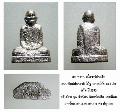 1. สร้างรูปเหมือนหล่อโบราณโดยแกะแม่พิมพ์ขึ้นใหม่ ไม่ทราบชื่อผู้แกะแม่พิมพ์ ลักษณะไม่เหมือนรูปหล่อของหลวงพ่อในชุดใด เมื่อหล่อไปจะแก้ไขพิมพ์ไปทำให้บุคลที่ได้ครอบครองในภายหลังเกิดความสับสน ลักษณะเนื้อโลหะที่ใช้ ทราบจากผู้ที่มีส่วนร่วมในการหล่อพระบอกว่ามีส่วนผสมของเนื้อเงิน ผสมกับ เนื้อชาร์ปรถไฟ จำนวนการสร้างประมาณ 100 องค์