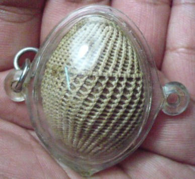 หลวงปู่เหรียญท่านมรณะภาพในปี2531อายุเบี้ยของท่านจะต้องมีความเก่าของเชือกและใบลานที่ผูกอยู่ใต้เบี้ยจะอยู่ในระดับ 20 ปีขึ้นไปความเก่าของใบลานนั้นสังเกตุดูได้จากสีจะออกสีน้ำตาลนวลๆเสมอกันทั่วทั้งหมดไม่ใช่น้ำตาลเข้มด่างๆมีสีขาวปน(พยายามจะทำให้เก่า)แต่ที่ผมเจอส่วนใหญ่ใบลานจะหลุดหายหมดแล้วครับส่วนศิลปะฝีมือการถักเบี้ยจะตาถี่ๆงดงามและเป็นศิลปะเดียวกับหลวงปู่รอดวัดนายโรงผู้ซึ่งเป็นอาจารย์ของท่านส่วนเบี้ยที่วางขายกันอยู่เกลื่อนกลาดตามสนามหรือในหน้าประมูลเครื่องรางนั้นผมก็ขอให้พิจารณาเอาครับผมเดินอยู่ในสนามเห็นประจำผมขอยืนยันเลยนะครับว่าเบี้ยของท่านตัวจริงๆนั้นไม่ใช่จะหากันได้ง่ายๆนะครับถามคนในพื้นที่นนทบุรีได้เพราะใครมีไว้ก็ต่างหวงแหนกันทั้งนั้นเพราะพุทธคุณเบี้ยของท่านนั้นไม่เป็นสองรองใครหรือถ้าใครอยู่แถวนนทบุรีไปที่วัดบางระโหงและสอบถามหลวงพี่วิชัย พระเลขาผู้ดูแลสำนักงานวัตถุมงคลของวัดบางระโหงดูก็ได้ครับ แล้วอย่าลืมเอาเบี้ยแบบที่วางขายกันอยู่ตามสนามที่มีจีวรห่อถักเชือกห่างๆไม่มีความสวยงามนั้นไปให้ท่านดูว่าใช่เบี้ยของหลวงปู่เหรียญท่านหรือเปล่าผมเคยถือเอาไปถามท่านมาแล้วครับวันนี้ผมได้แนบรูปเบี้ยของหลวงปู่เหรียญมาให้ชมกันด้วยครับตัวนี้เป็นแค่ยุคกลางนะครับส่วนยุคต้นๆลายถักเชือกจะถี่และสวยงามกว่านี้ครับ  |