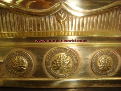 ด้านหน้าเป็นเหรียญ ภาษาจีน อ่านว่า"เฮง เฮง เฮง" ที่ฐานเป็น 12 นักษัตร