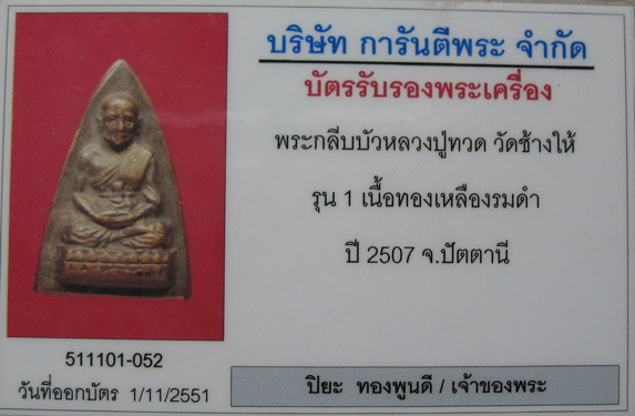 กลีบบัวหลวงปู่ทวด รุน1 เนื้อทองเหลืองรมดำปี2507 อาจารย์ทิมปลุกเสก วัดช้างให้ครับ บล็อคนิยมมีบัตรรับรองครับ สภาพสวยมากๆ