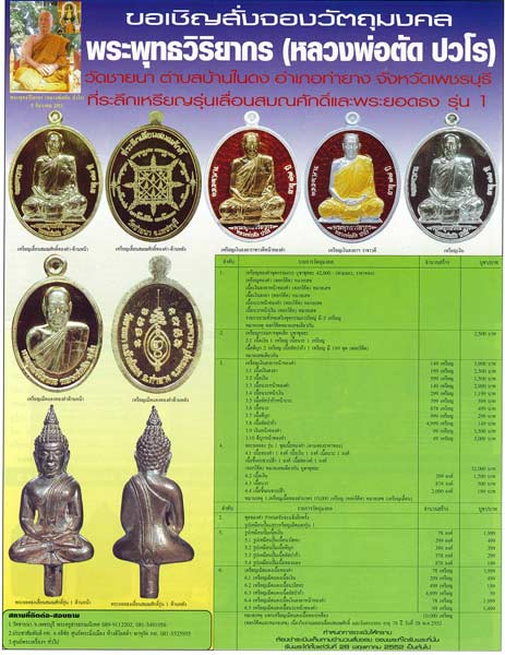 รายการจองพระยอดธงที่ระลึกเลื่อนสมณศักดิ์ พระพุทธวิริยากร ( หลวงพ่อตัด ปวโร )