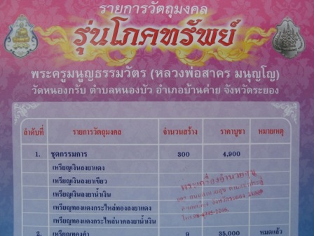 แต่ละรายการราคาวัดครับ และบวกค่าส่ง ems 50 บาท ( สำหรับสมาชิกที่ให้จัดส่งทางไปรษณีย์ )