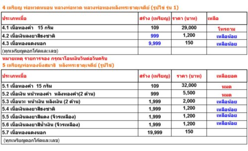 ตารางแสดง รายการเหรียญที่ยังมีและใกล้หมด |