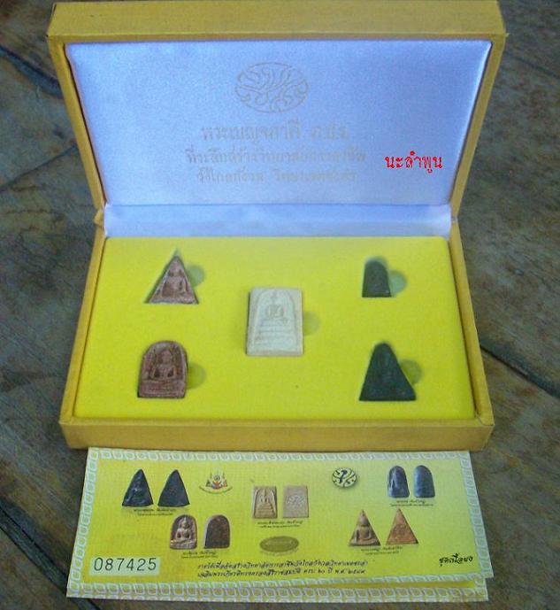 พระชุดเบญจภาคี ภ. ป.ร. เฉลิมพระเกียรติ ฉลองสิริราชสมบัติครบ 60 ปี จัดสร้างขึ้นด้วยมวลสารศักดิ์สิทธิ์จากวัดต้นกำเนิด ทั้ง 5 วัด และผงอิทธิเจ ปัตทะมัง จากเจ้าประคุณสมเด็จ และผงพระจากเกจิคณาจารย์รุ่นเก่า พระแต่ละองค์ถอดแบบมาจากพระเบญจภาคีองค์แชมป์ของกำนันชูชาติ โดยมิได้มีการตกแต่งแบบพิมพ์ใดๆ พิธีมหาพุทธาภิเษก ในวันที่ 29 พ.ย.2549 เวลา 17.00 น. ณ วัดพระศรีรัตนศาสดาราม กทม. ซึ่งมีพระราชาคณะและเกจิอาจารย์จากทั่วประเทศ 79 รูป นั่งปรกปลุกเสก รายนามพระเกจิคณาจารย์ (ยกมาเพียงบางส่วน) สมเด็จพระพุฒาจารย์ วัดสระเกศ กทม., สมเด็จมหารัชมังคลาจารย์ วัดปากน้ำ กทม., หลวงปู่ทิม วัดพระขาว อยุธยา, หลวงพ่อรวย วัดตะโก อยุธยา, หลวงพ่อเพิ่ม วัดป้อมแก้ว อยุธยา, หลวงพ่อพูล วัดบ้านแพน อยุธยา, หลวงพ่อเจือ วัดกลางบางแก้ว นครปฐม, หลวงพ่ออุ้น วัดตาลกง เพชรบุรี,หลวงพ่อสวัสดิ์ วัดศาลาปูน อยุธยา, หลวงพ่อเอียด วัดไผ่ล้อม อยุธยา, หลวงพ่อประสิทธิ์ วัดไทรน้อย นนทบุรี, หลวงพ่อทองกลึง วัดเจดีย์หอย ปทุมธานี, หลวงพ่อสมศักดิ์ วัดโสธร ฉะเชิงเทรา, หลวงพ่อพรหม วัดบ้านสวน พัทลุง, หลวงพ่อเที่ยง วัดพระบาทเขากระโดง บุรีรัมย์, หลวงพ่อแย้ม วัดสามง่าม นครปฐม พระทั้ง 5 องค์ อัญเชิญตรา ภ. ป.ร. ประดิษฐานที่ด้านหลัง และยิงโค้ดเลข ๙ และดวงตราสัญลักษณ์ด้วยเลเซอร์ที่ด้านหลัง โดยเฉพาะพระสมเด็จในแต่ละชุด จะมียิงเลขประจำชุดไว้ ซึ่งตัวเลขจะตรงกับบัตรประจำกล่อง