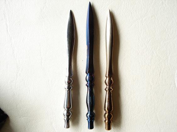 พระขรรค์กลาง ยาว 5" เนื้อพญาเหล็กไหล 1.วรรณะสีเงินยวง 3000 2.วรรณะสีเจ้าน้ำเงิน 4000 3.วรรณะสีทองท้องปลาไหล 5000 (รายละเอียดเนื้อหาดูได้จากบทความจากร้านค้าด้านบน) ///พญาเหล็ก นั้นจะมี 3 วรรณะ(สี) คือ 1.สีเงินยวง เด่นด้านเมตามหานิยม เจริญรุ่งเรือง 2.สีปีกแมลงทับ (เจ้าหน้าเงิน)เด่นด้านมหาอำนาจ วาสนา บารมี 3.สีทอง (ท้องปลาไหล) เด่นด้านเงินทอง โชคลาภ โดยสีทองนี้จะมีน้อยสุดในการเรียกแต่ละครั้ง ใครที่ได้ไปต่างหวงแหน พระพญาเหล็กนี้ มีคุณ 108 ประการตามแต่อธิษฐาน กิจการงานเจริญก้าวหน้า เดินทางไปที่ใด มีเทพยดา ปกปักรักษา และเมื่อเราจะมีโชคลาภหรือจะได้เลื้อนยศ เลื่อนตำแหน่ง ให้สังเกตุที่สีขององค์พระ จะสุกปลั่งขึ้นเอง/// |