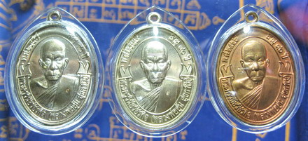 | หัวข้อกระทู้ : เหรียญโบ รุ่น1 หลวงพ่ออุ้น วัดตาลกง เพชรบุรี 3 เนื้อ 3องค์ นวะ อัลปาก้า ทองแดง สวยๆ |
