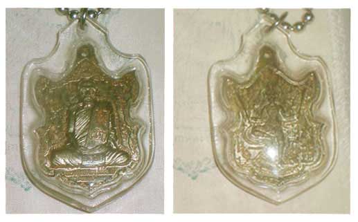เหรียญพระนารายณ์แปลงรูป ด้านหน้าเป็นรูปหลวงปู่กาหลงนั่งเต็มองค์ ส่วนด้านหลังเป็นยันต์พระนารายณ์แปลงรูป ตำรับพิชัยสงคราม ซึ่งรูปยันต์ด้านหลังเป็นลายมหามงคลจักรวาล คือรูปยันต์พระนารายณ์ จากบทพระนารายณ์แปลงรูป เป็นพระยันต์สำคัญที่มีความศักดิ์สิทธิ์สูงส่ง