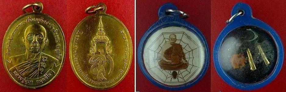 3. ล็อกเก็ตแมงมุมนั่งเต็มองค์ หลังอุดผงฝังตะกรุด 2 ดอก พร้อมจีวร อายุครบ๑๐๙ปี
