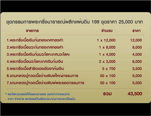 (รายการนี้ รับใบจองตัวจริงและลงชื่อผู้จองเพื่อสลักชื่อที่ฐานหลวงปู่ทวด) |