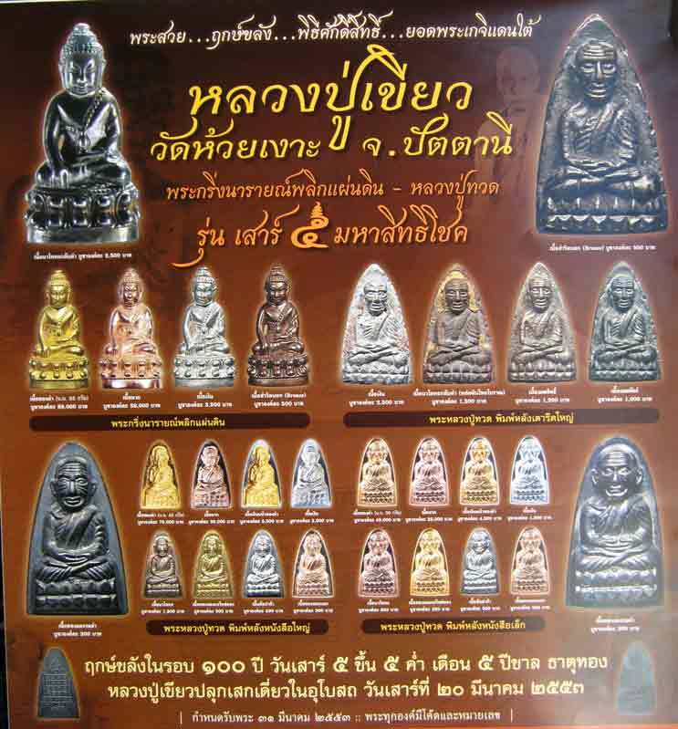 หัวข้อกระทู้ : เปิดจองแล้วครับ..!!..ลพ.ทวด รุ่นเสาร์๕ มหาสิทธิโชค หลวงปู่เขียว วัดห้วยเงาะ ปัตตานี