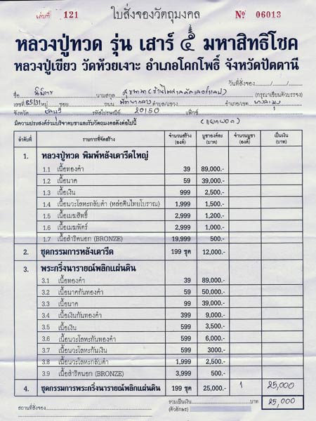 ใบจองแยกจากชุดกรรมการพระกริ่งนารายณ์พลิกแผ่นดิน สร้าง 199 ชุด