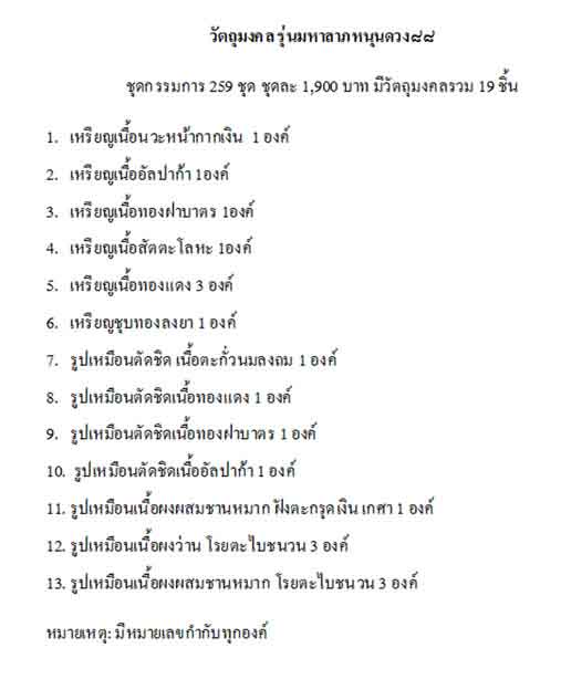 ชุดกรรมการ หลวงปู่คำบุ รุ่น มหาลาภหนุนดวง ๘๘