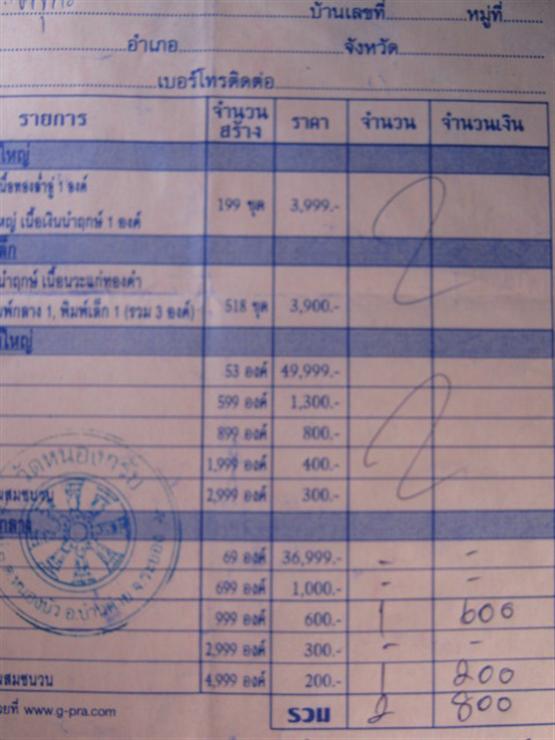 ใบจอง..รับวัตถุมงคลได้เลยที่วัดหนองกรับครับ