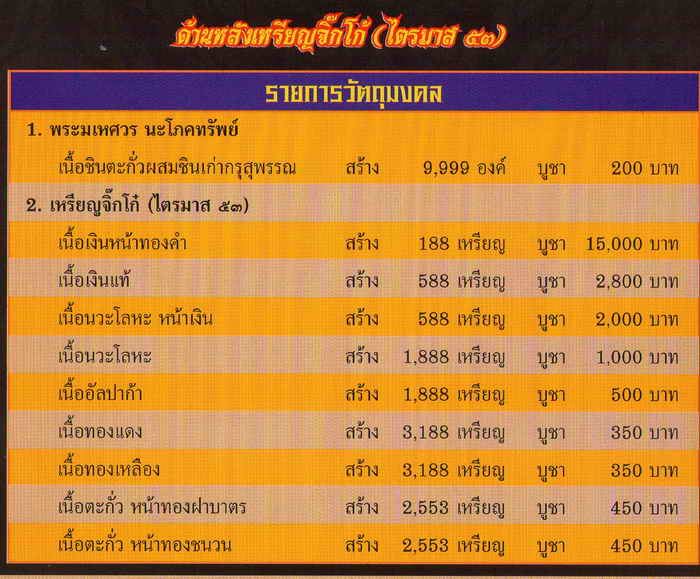 วัตถุมงคลทุกรายการมีโค๊ดและหมายเลขกำกับ |
