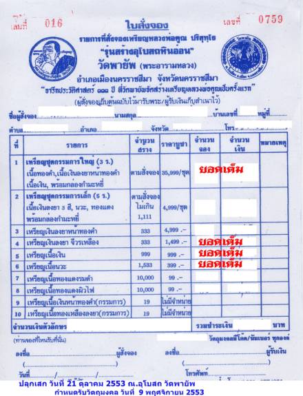 หมายเหตุ ต้องการใบจองเพิ่มอีก 50 บาท