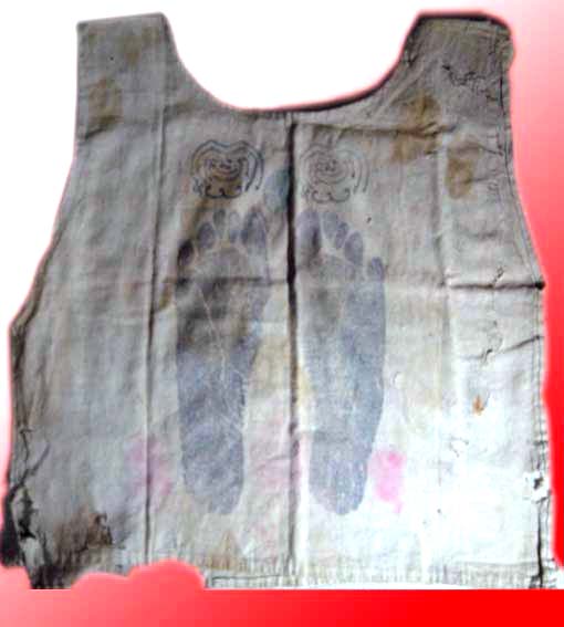 เสื้อยันต์หลวงพ่อเดิมเป็นเสื้อยันต์ที่หลวงพ่อสร้างแจกชาวบ้านและทหารตำรวจในคราวสงครามมหาเอเซียบูรพา....เพื่อให้ไว้ป้องกันข้าศึกสงครามและประเทศชาติ...เป็นเครื่องรางที่หาได้ยากอีกชนิดของหลวงพ่อครับ สภาพใช้งานมาอย่างโชกโชน จนเก่าคร่ำคร่าทีเดียวครับ ทำจากผ้าฝ้ายดิบโดยใช้มือเย็บเพราะไม่มีเครื่องจักรผลิตทันการสร้างอย่างเร่งด่วนในช่วงสงครามกำลังเกิดครับ ใครมีเวลาก็จะเย็บเป็นตัวเสื้อด้วยมือ และนำมาให้หลวงพ่อลงยันต์ประทับอีกครั้งหนึ่ง และทำการปลุกเสกลงคาถาอาคมกำกับอีกทีหนึ่งและประสิทธิ์ประสาทให้แก่เจ้าของเสื้อที่นำมาให้ครับ...ก่อนอบรมและแนะนำวิธีใช้และข้อห้ามต่างๆแก่ผู้ที่ครอบครองเสื้อยันต์ของท่านครับ..ไม่ค่อยได้มีพบเห็นเท่าใดนักเพราะชำรุดผุพังไปตามกาลเวลาเพราะทำจากผ้าจึงเปื่อยยุ่ยง่ายครับ..เสื้อยันต์ตัวนี้ด้านหนึ่งเป็นรูปหลวงพ่อนั่งอีกด้านเป็นยันต์รอยเท้าของหลวงพ่อประทับอยู่ครับ...เปิดให้บูชาราคาเบาๆที่ 3500 บาทครับผม สนใจติดต่อโดยตรงได้ที่เบอร์ 07-9078071 (วชิรายุทธ) ตลอดเวลาครับผม |
