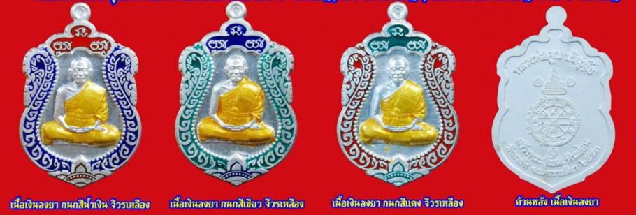 1.เหรียญเงินลงยา กนกสีน้ำเงิน จีวรเหลือง มี 3 เหรียญๆละ 1600 บาท