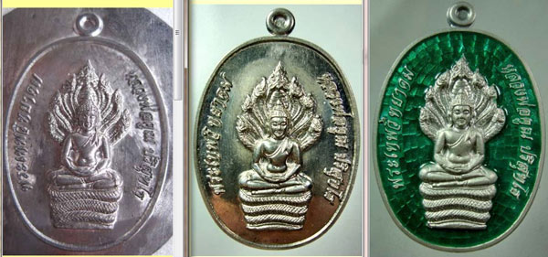 1.เหรียญรูปไข่ครึ่งองค์หูเชื่อม เนื้อนวะลงยา เหรียญละ 1,250 บาท มี 5 เหรียญ