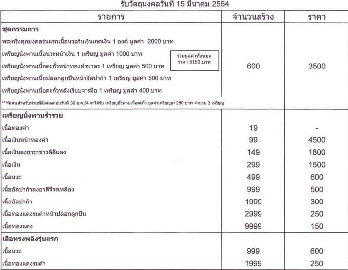 3.เหรียญนั่งพานร่ำรวย เนื้อทองแดง 10 เหรียญ เหรียญละ 150 รวม 1,500 บาท