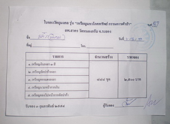 ใบจองวัดชุดกรรมการผ้าป่า แบ่งให้ชุดละ 4100บาท (มีทั้งหมด 1ชุด)