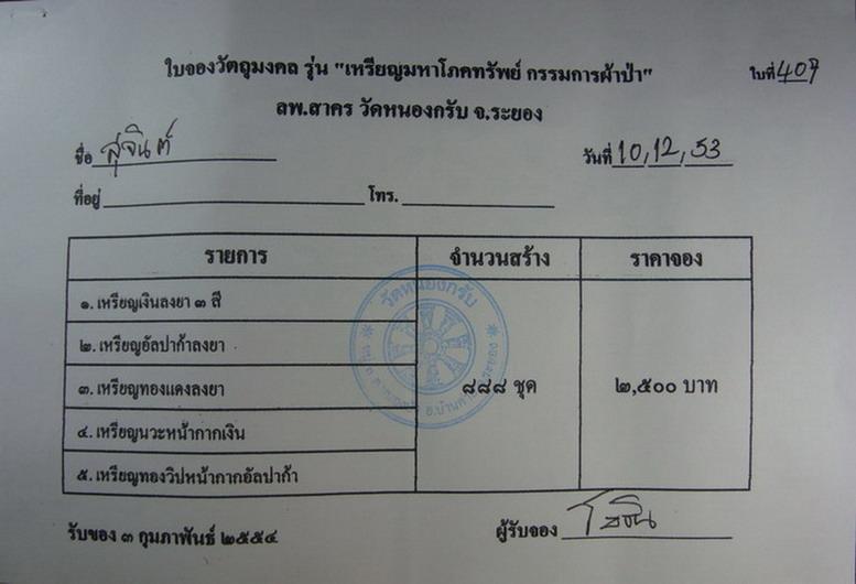 ใบจอง เหรียญมหาโภคทรัพย์ ชุดกรรมการผ้าป่า(ใบจองวัด) 4 ใบ