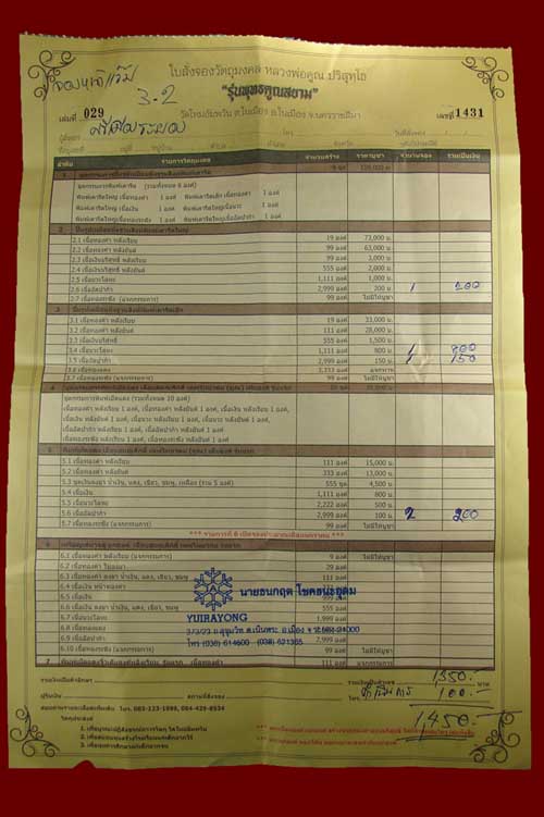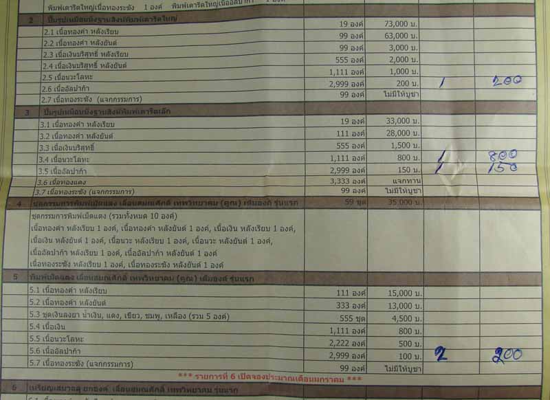 ขายใบจองพระหลวงพ่อคุณ รุ่น พุทธคุณสยาม รวมทั้งหมด 5 เหรียญ ดังนี้ 1.เหรียญปั๊มรูปเหมือน นั่งฐานสิงห์ พิมพ์เตารีดใหญ่ ( เนื้ออัลปก้า 1 เหรียญ ) สร้าง 2,999 องค์ 2.เหรียญปั๊มรูปเหมือน นั่งฐานสิงห์ พิมพ์เตารีดเล็ก ( 1. เนื้ออัลปก้า 1 เหรียญ สร้าง 2,999 องค์ // 2. เนื้อนวะ 1 เหรียญ สร้าง 1,111 องค์ ) 3.เหรียญพิมพ์เม็ดแตง เลี่อมสมณักดิ์ ( เทพวิทยาคม ) คูณ เต็มองค์รุ่นแรก ( เนื้ออัลปก้า 2 เหรียญ สร้าง 2,999 องค์ ) รวมทั้งหมด 5 เหรียญ ( 2,000 บาท ทั้งชุด ) |