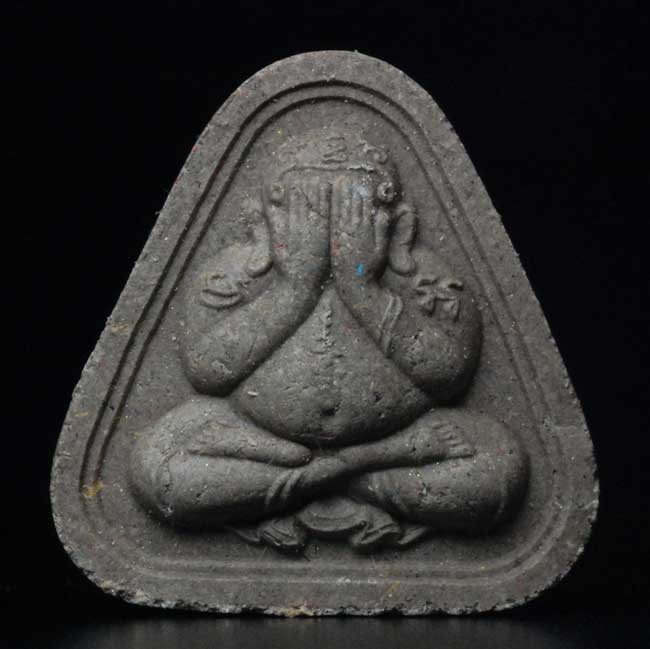 เนื้อน้ำตาลเข้มผสมว่านและจีวรหลวงพ่อ บางองค์เห็นชัด บางองค์เห็นเล็กน้อย พร้อมกล่อง ส่วนหนึ่งแจกทหาร อีกส่วนทางวัดแบ่งให้เช่าบูชาที่วัดครับ