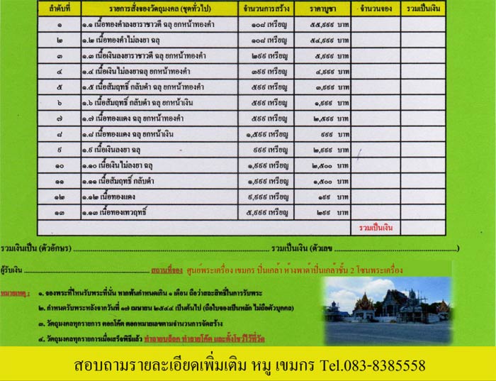 1.11 เนื้อสำริดกลับดำ ราคา 1,500 x 1 = 1,500