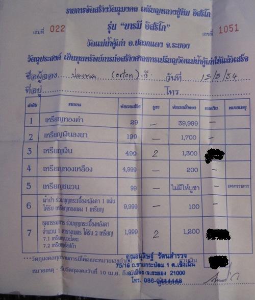 1.เหรียญเนื้อเงินสร้าง ๔๙๙ ชุด จำนวน 1 เหรียญๆละ 3,000 บาท