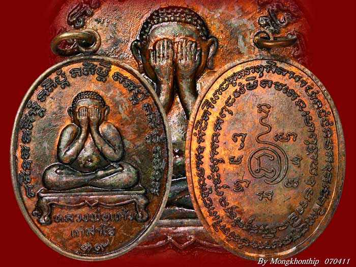 เหรียญปิดตารุ่นแรก หลวงปู่แก้ว เกสาโร เหรียญสวย จุ่มนำมันงา จารย์ 3 ตัว พระแท้ดูง่าย สวย ปี 19 ครับ