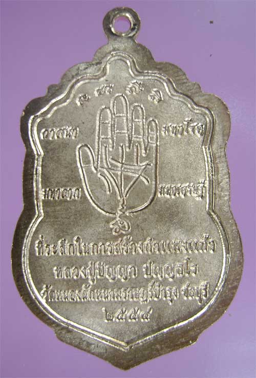 จึงจัดสร้างเหรียญเสมาวาสนา หลังลายมือ ที่มีเส้นสมบูรณ์เรียกว่า"ลายมือพระโพธิสัตย์" เพื่อให้ผู้ใช้เหรียญนี้ เสมือนได้ดึงเส้นต่อเส้นวาสนา จากหลวงปู่