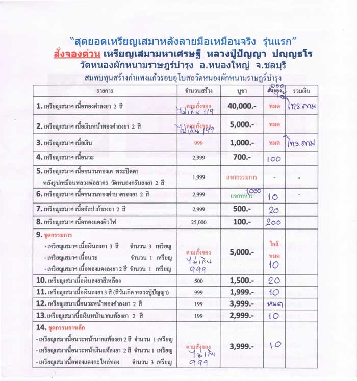 ขอเชิญสั่งจองเหรียญเสมาวาสนาหลังลายมือ หลวงปู่ปัญญา วัดหนองผักหนาม วัตถุประสงค์เพื่อสมทบการสร้างกำแพงแก้ว พระอุโบสถวัดหนองผักหนามครับ ซึ่งได้เปิดจองและปิดการจองแล้ว ผมเห็นว่ายังมียอดเหลืออยู่ ได้ขอยอดมาเพื่อเปิดจองในเวป ให้เพื่อนสมาชิกได้ใช้เหรียญดี