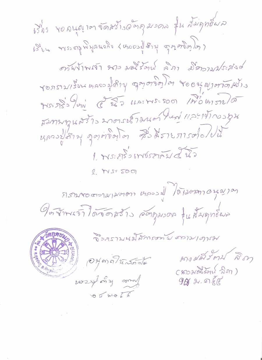 *****วัตถุประสงค์ เพื่อนำรายได้จัดสร้างบาตรน้ำเนื้อโลหะขนาดเส้นผ่าศูนย์กลาง 1 เมตร และส่วนที่เหลือเข้ากองทุนดูแลสุขภาพหลวงปู่คำบุ คุตตะจิตโต
