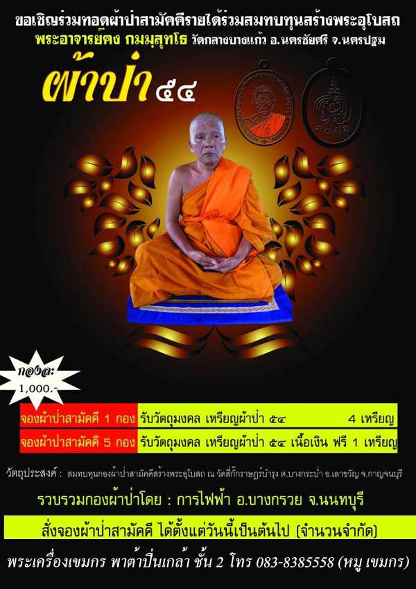 *** รับพระได้เลยประมาณปลายเดือนพฤษภาคมหรือต้นเดือนมิถุนายนและจะถวายผ้าป่าในเดือนกรกฎาคม