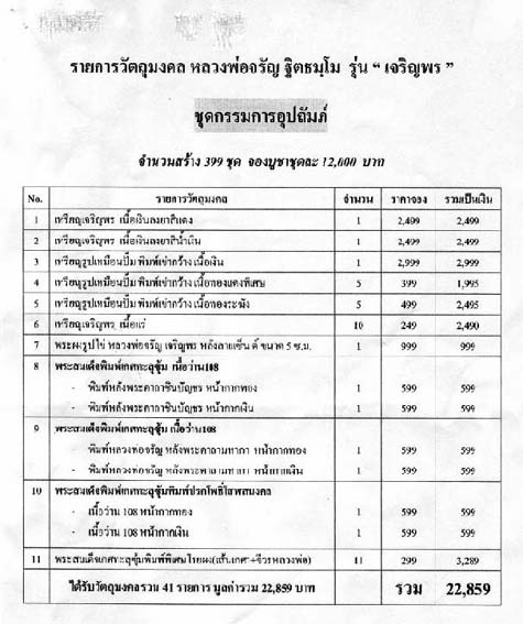 ชุดกรรมการ รุ่นเจริญพร หลวงพ่อจรัญ ฐิตธมฺโม วัดอัพวัน จ.สิงห์บุรี