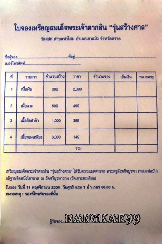 เหรียญสมเด็จพระเจ้าตากสิน รุ่น สร้างศาล วัดสลัก หลวงปู่บัว ปลุกเสก ๑ ไตรมาศ