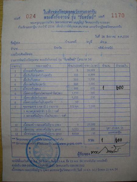 ต้องการให้จัดส่งใบจองหรือจัดส่งพระให้กรุณาแจ้งด้วยครับ. |