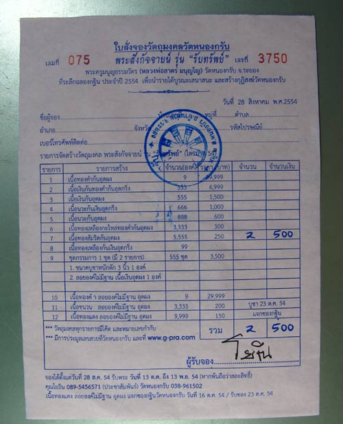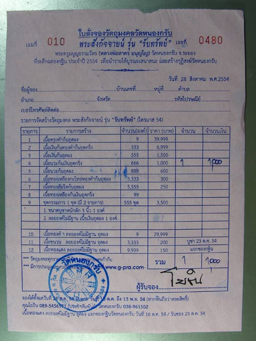 | หัวข้อกระทู้ : พระสังกัจจายน์ รับทรัพย์ ใบจองวัด ราคาเหมาครับ 5 ใบครับ |