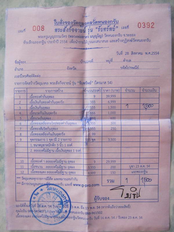 ส่งใบจองให้นำไปรับพระเอง หรือ ให้รับพระให้แล้วจัดส่ง ก็ได้