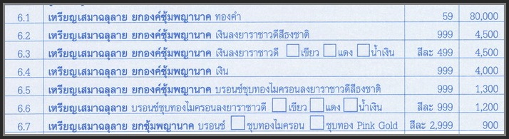 ....เนื้อทองคำ..............................................................สร้าง..........59 เหรียญๆละ.....80,000 บาท.........มียอด...........1 เหรียญ