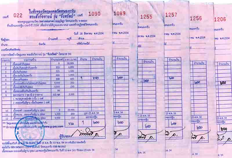ใบจอง พระสังกัจจายน์ หลวงพ่อสาคร