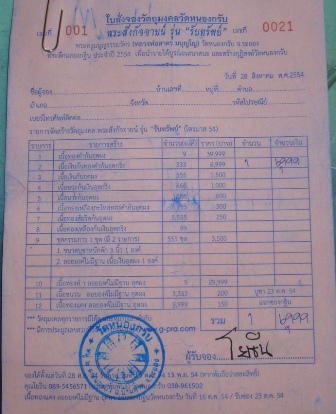 ใบจองวัด...ค่าจัดส่ง 50 บาทครับ