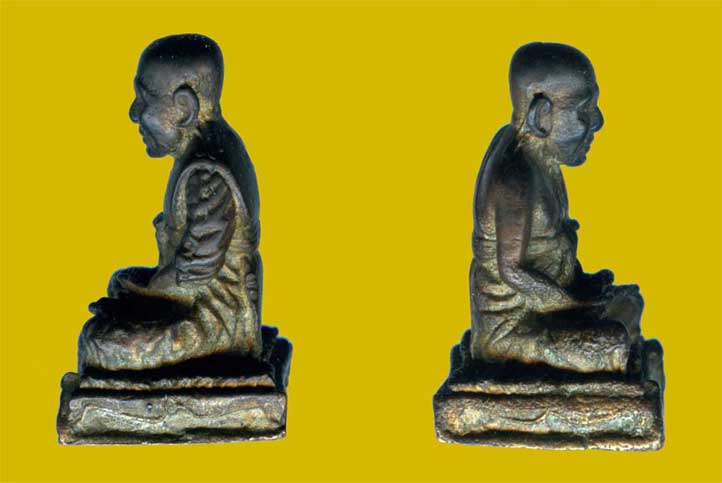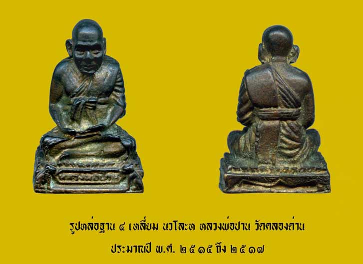 สันนิฐานการสร้างตกราวปี พ.ศ. ๒๕๑๕ ๑๗ น่าจะออกแถววัดย่านตะวันออก เช่น วัดเจริญวราราม หรือ วัดแจ่มศรัทธรธรรม เป็นต้น พุทธศิลป์แกะพิมพ์ได้เหมือนองค์หลวงพ่อฯ มาก แถมยังใส่ประวัติเรื่องราวของหลวงพ่อฯ ลงไปในรูปหล่อนี้ คือ สัญญาลักษณ์ เสือ ๒ ตัว พระสภาพสวยเดิม เนื้อนวโลหะ งานแกะแม่พิมพ์น่าจะเป็นงานท่านช่างเกษม ผู้แกะรูปหล่อสมเด็จโต ๑๐๐ ปี ในยุคนั้น หมายเหตุ เป็นเรื่องที่ได้ยินได้ฟังในสนามพระ โปรดใช้วิจารณญาณ ขนาด สูง 2 ซม x 1.1 ซม โดยประมาณ